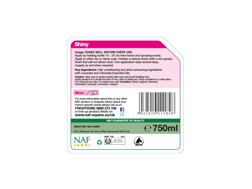 Pečujte o srst svého koně s tímto voňavým sprejem. Vytváří bohatý přirozený lesk a zanechává nemastný film, který odpuzuje prach. Jedna aplikace vydrží na několik dní, opakujte použití kdy a kde je potřeba.Obsahuje levandulový a citronelový olej, který zároveň působí pro odpuzování hmyzu, takže spojuje dva efekty použití.